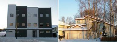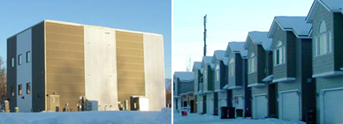 New $245,000 condominiums in R-3 view the back of metal building with exposed mechanical equipment.