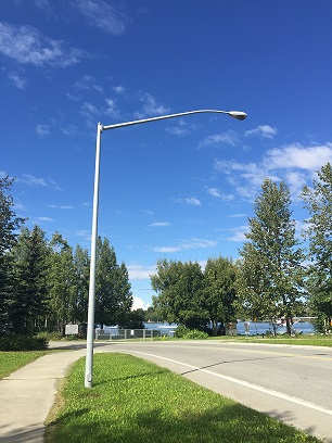 Metal light poles along a roadway, intersection or sidewalk are typically maintained by the Municipality of Anchorage, Street Light Maintenance.