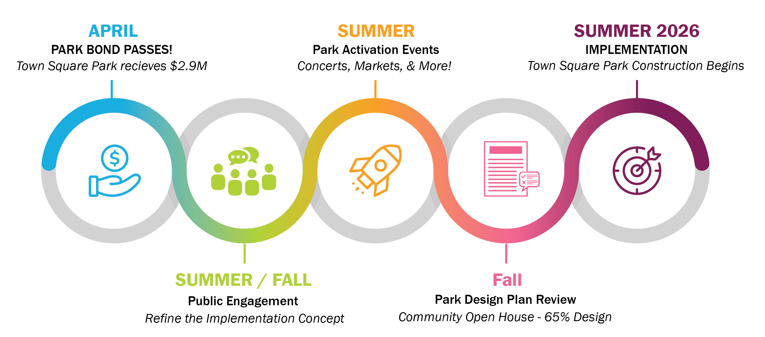 In 2019, following two years of public involvement and plan development, the Town Square Park Master Plan was approved by the Planning and Zoning Commission. The master plan provides a 20-year vision that seeks to address issues, prioritize improvements, and identify strategies to ensure that Town Square Park is a safe and thriving public space for all.